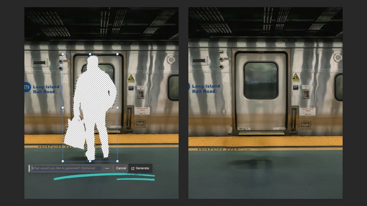 5) Use Generative Fill: Click into the generative fill box at the bottom and hit "Generate" without typing anything. Photoshop will fill in the background seamlessly. Choose the best variation from the right-hand side.