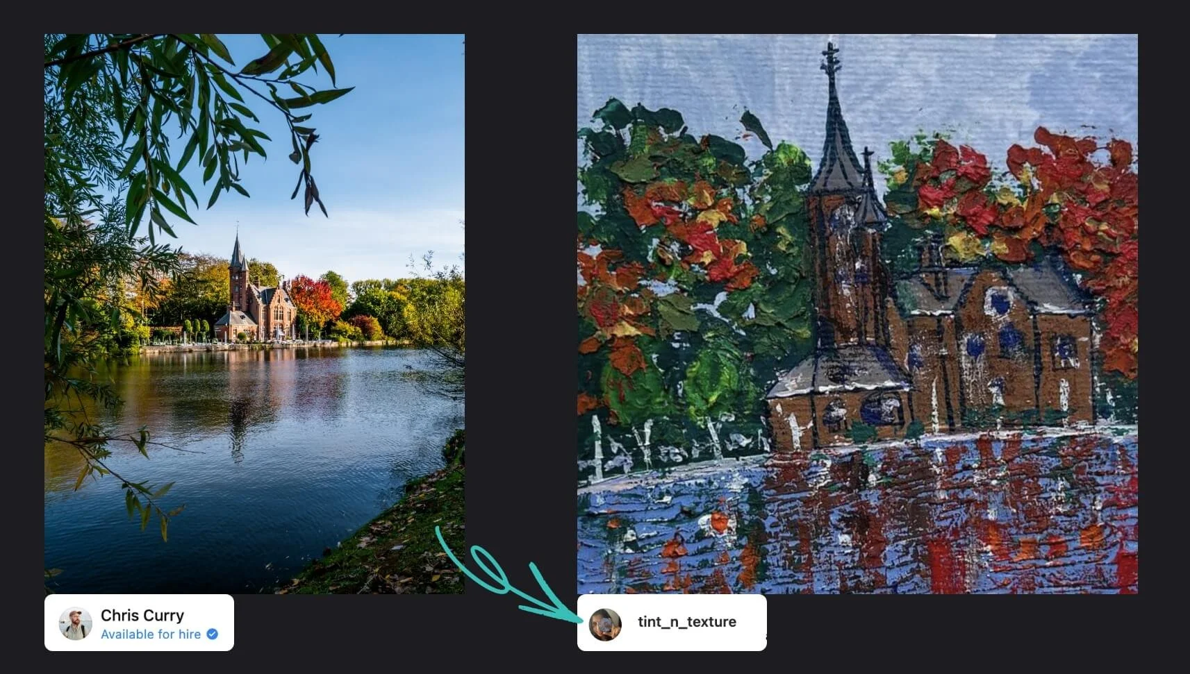 A testament to this shared spirit are the moments when artists use my work as a foundation for their own unique creations. It's a privilege to see my photography reimagined into stunning pieces of art, thanks to the recognition and tags from these creators on Instagram.