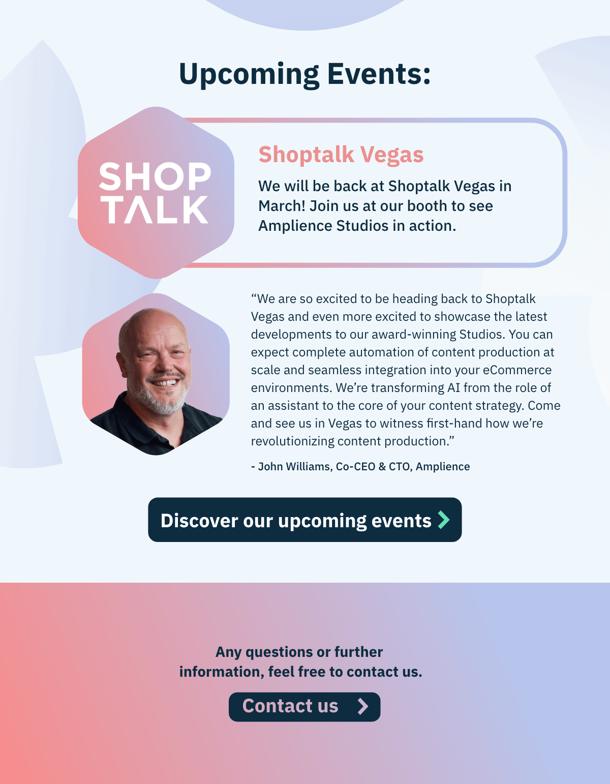 Amplience needed a creative partner who could understand and execute their vision with precision and speed. Following the departure of their in-house design team, they required someone who could not only maintain their design standards but elevate them—all while meeting tight deadlines for their marketing initiatives and flagship events.